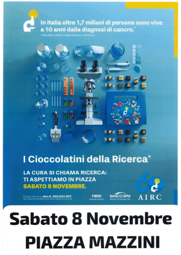 Vi aspettiamo Sabato 8/11, in Piazza Mazzini per l’incontro con AIRC!